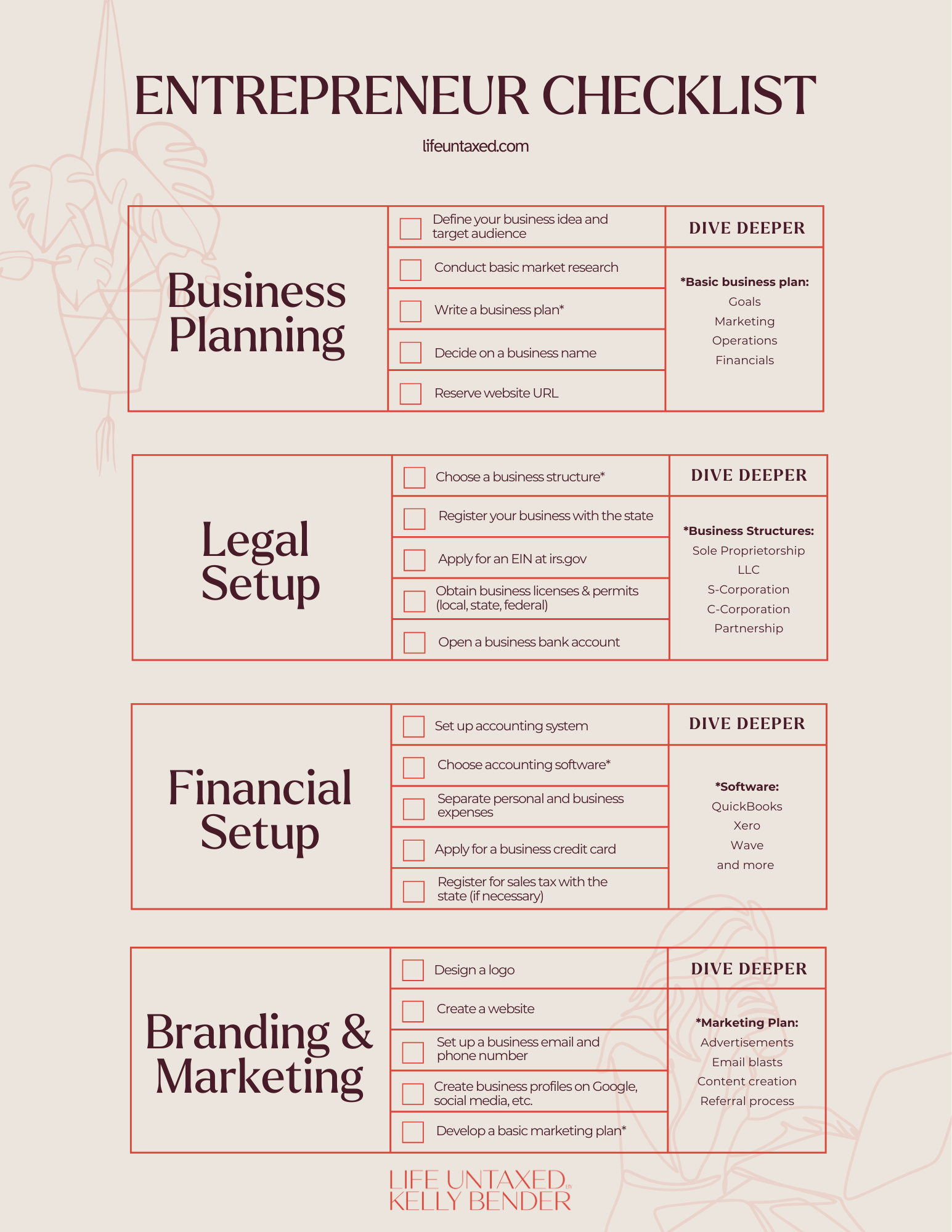 You’ll get bite-sized tips for tackling finances, building your brand, setting up your operations, and even hiring your first team member (if that’s in the cards).